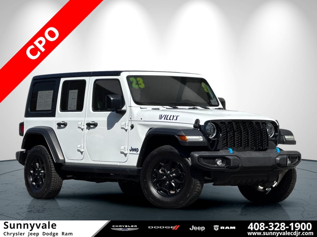 2.0L I4 DOHC, 3.73 Rear Axle Ratio, 4G LTE Wi-Fi Hot Spot, 4xe 4-Wheel Drive Swing Gate Decal, 7 & 4 Pin Wiring Harness, 700 Amp Maintenance Free Battery, 97 MPH Vehicle Max Speed Calibration, Anti-Spin Differential Rear Axle, Apple CarPlay, Apple CarPlay/Android Auto, Auxiliary Switches, Black 3-Piece Hard Top, Black Grille, Brake assist, Class II Receiver Hitch, Delay-off headlights, Electronic Stability Control, Freedom Panel Storage Bag, Front Bucket Seats, Front fog lights, Front LED Fog Lamps, Fully automatic headlights, Google Android Auto, LED Headlamp & Fog Lamp Group, LED Premium Reflector Headlamps, Molded-In-Color Fender Flares (2-Piece), MOPAR All-Weather Floor Mats, Normal Duty Suspension, Panic alarm, ParkView Rear Back-Up Camera, Quick Order Package 29W Willys, Radio: Uconnect 4C Nav w/8.4" Display, Rear anti-roll bar, Rear Window Defroster, Rear Window Wiper/Washer, Remote keyless entry, Security system, Speed control, Split folding rear seat, Trailer Tow & Aux Switch Group, USB Host Flip, Wheels: 17" x 7.5" Black Aluminum, Willys, Willys 4xe Hood Decal.