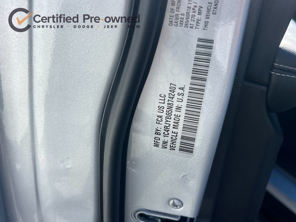 2.0L I4 DOHC, 4WD, 10.1" Touchscreen Display, 4G LTE Wi-Fi Hot Spot, All Radio Equipped Vehicles, Apple CarPlay, Auto High-beam Headlights, Brake assist, Connected Travel & Traffic Services, Connectivity - US/Canada, Delay-off headlights, Disassociated Touchscreen Display, Dual-Pane Panoramic Sunroof (DISC), Electronic Stability Control, For Details, Visit DriveUconnect.com, Front Passenger Interactive Display, Fully automatic headlights, Global Telematics Box Module (TBM), Google Android Auto, GPS Antenna Input, GPS Navigation, HD Radio, Heated front seats, Heated rear seats, Heated steering wheel, Heavy Duty Suspension, Integrated Center Stack Radio, Integrated Voice Command w/Bluetooth, Panic alarm, ParkView Rear Back-Up Camera, Power Liftgate, Pur Wrapped Instrument Panel, Radio: Uconnect 5 Nav w/10.1" Display, Rear anti-roll bar, Remote keyless entry, Security system, SiriusXM Radio Service, SiriusXM Satellite Radio, SiriusXM w/360L, USB Host Flip, Wheels: 18" x 8" Fully Painted Aluminum.
