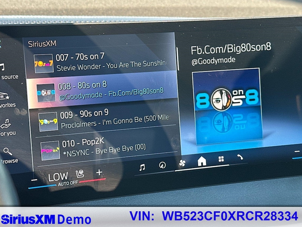 Active Cruise Control w/Stop & Go, Active Driving Assistant Pro, Active Lane Keeping Assistant, Apple CarPlay & Android Auto Compatibility, Apple CarPlay Compatibility, Auto High-beam Headlights, BMW Assist eCall, BMW TeleServices, Brake assist, Connected Package Pro, Convenience Package, Driving Assistance Professional Package, Electronic Stability Control, Exterior Parking Camera Rear, Front Bucket Seats, Fully automatic headlights, harman kardon Surround Sound System, Heated Front Seats, Heated front seats, Hi-Fi Sound System, Highway Assistant, Iconic Sounds Electric, Live Cockpit Pro, Navigation, Navigation System, Panic alarm, Parking Assistant Plus, Parking Assistant Professional, Power Liftgate, Radiant Heating Package, Remote keyless entry, Security system, SiriusXM w/360L & 1 Yr Platinum Plan Subscription, Split folding rear seat, Surround View w/3D View, Traffic Jam Assistant, Wheels: 20" x 8.5" Aero Frzn Drk Grey (Style 1002) (1GR), Wireless Device Charging.