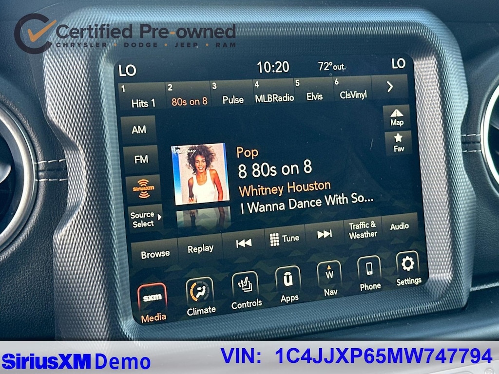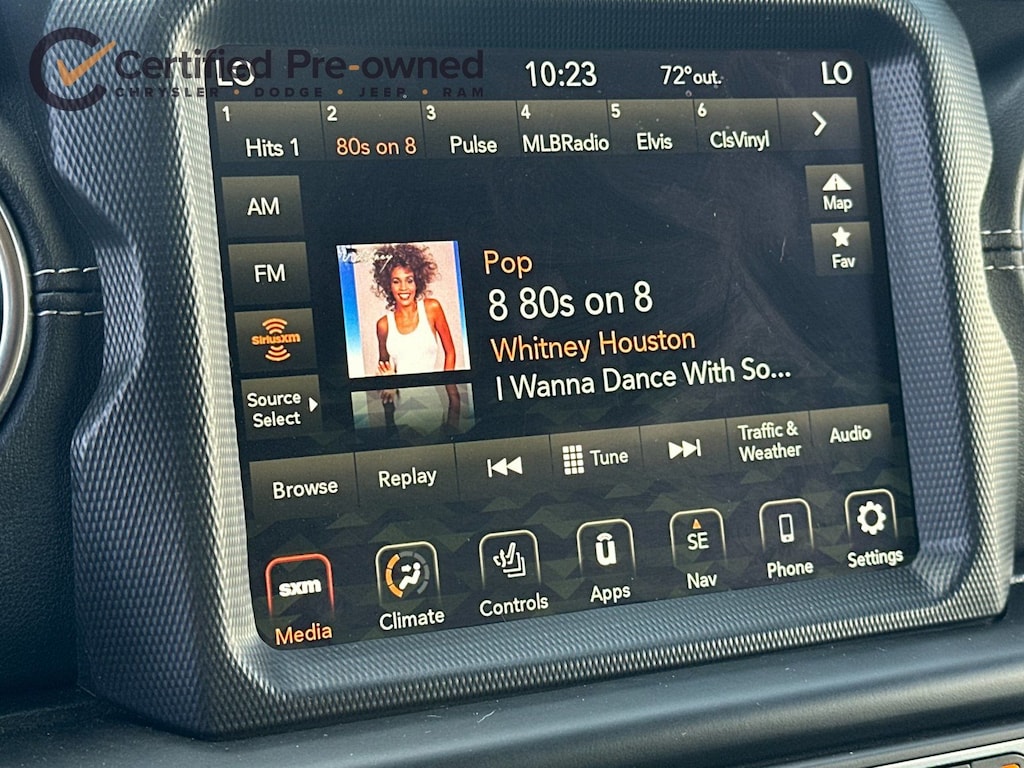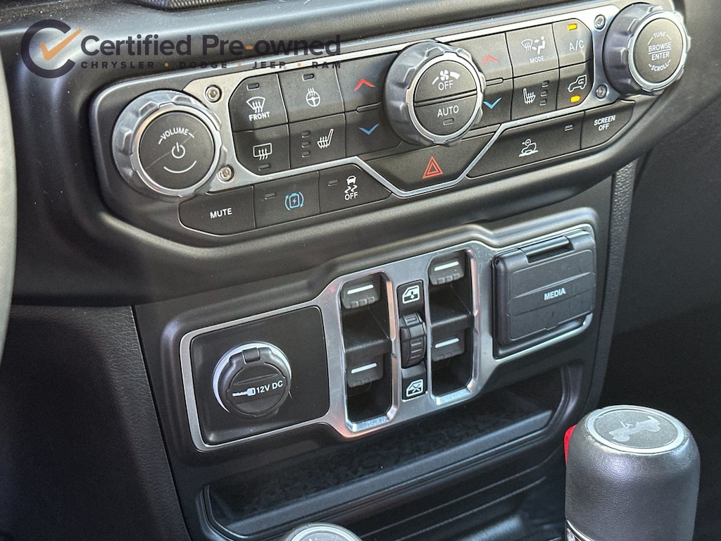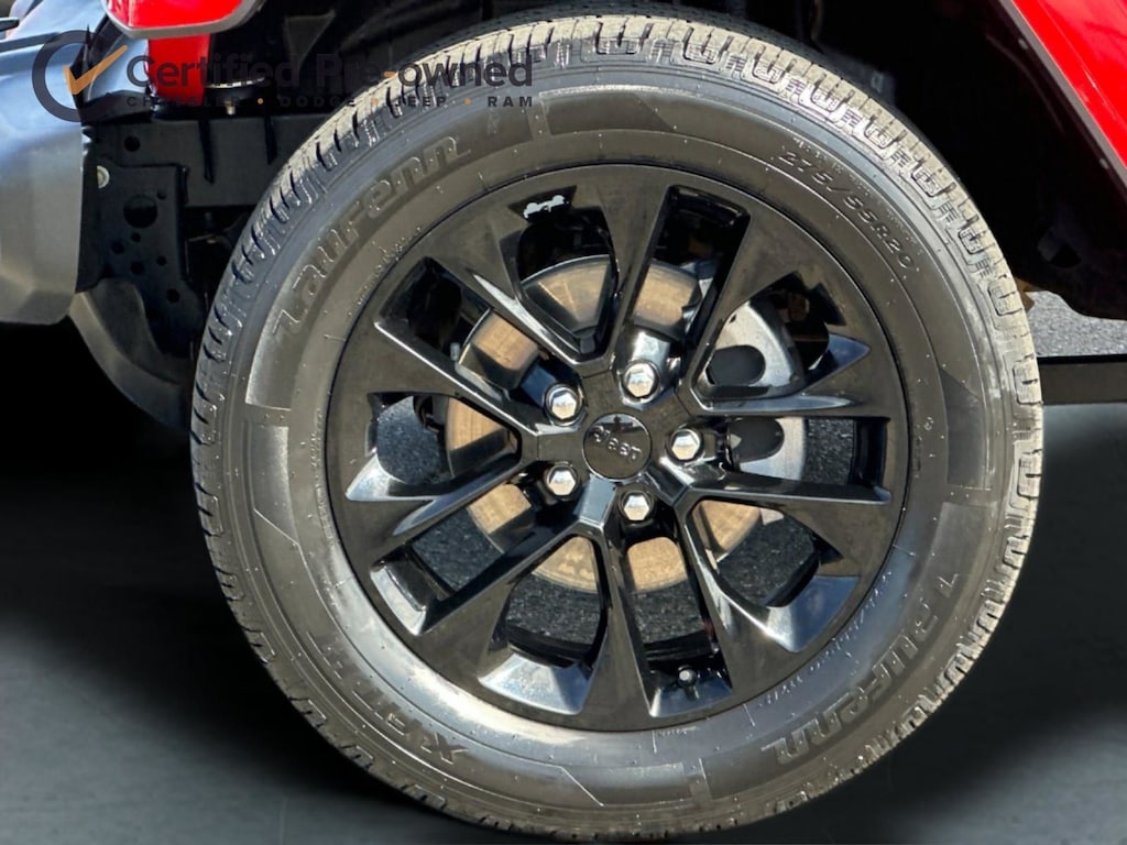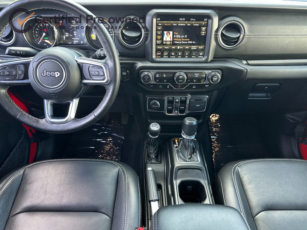 2.0L I4 DOHC, ABS brakes, Alloy wheels, Apple CarPlay/Android Auto, Brake assist, Cold Weather Group, Compass, Delay-off headlights, Electronic Stability Control, Emergency communication system: SiriusXM Guardian, Front Bucket Seats, Front dual zone A/C, Fully automatic headlights, Heated Front Seats, Heated Steering Wheel, Illuminated entry, Leather Shift Knob, Leather steering wheel, Leather Trimmed Seats w/Sahara Logo, Leather Wrapped Park Brake Handle, Low tire pressure warning, Navigation System, Panic alarm, ParkView Rear Back-Up Camera, Passenger door bin, Power Top Quarter Window Storage Bag, Premium Black Sunrider Soft Top w/Dual Top Group, Remote keyless entry, Remote Proximity Keyless Entry, Remote Start System, Removable Rear Quarter Windows, Security system, Sky 1-Touch Power Top, Speed control, Sport Suspension, Traction control, Wheels: 20" x 8" Fully Painted Aluminum.