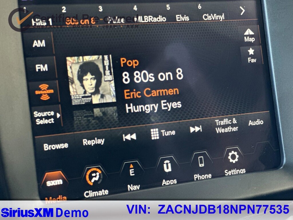 17" x 7.0" Aluminum Wheels, Apple CarPlay/Android Auto, Brake assist, Delay-off headlights, Electronic Stability Control, Emergency communication system: SiriusXM Guardian, Fully automatic headlights, Navigation System, Panic alarm, ParkView Rear Back-Up Camera, Quick Order Package 22B, Radio: Uconnect 4C Nav w/8.4" Display, Security system.