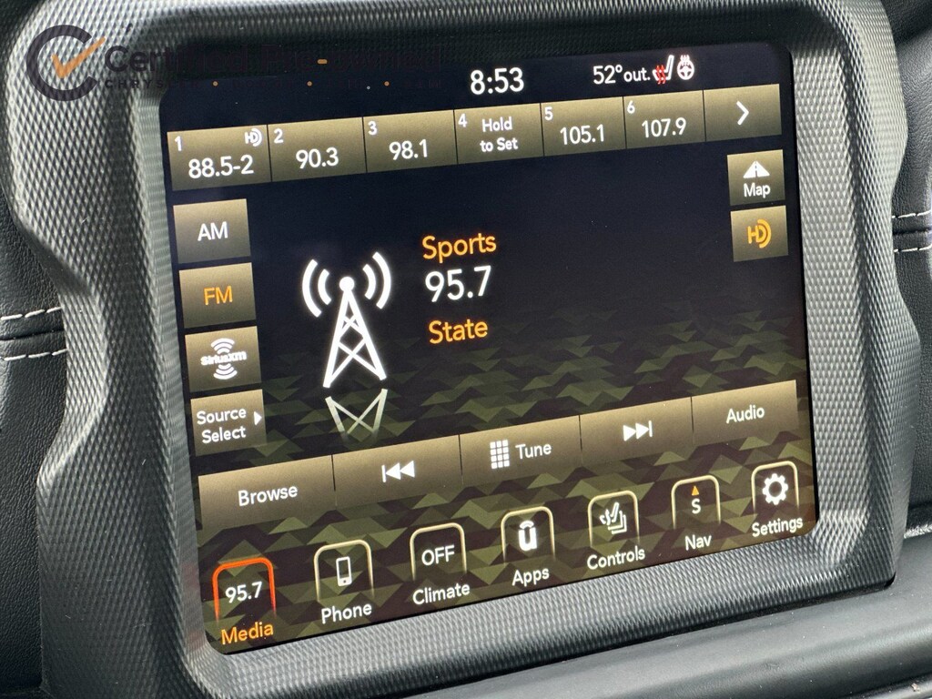 * Vehicles Up to 75,000 Miles and/or 5 Model Years. 24-Hour Towing & Roadside Assistance, Car Rental Allowance, CARFAX® Vehicle History ReportTM and an Introductory 3-month Subscription to SiriusXM® Satellite Radio & Certified Warranty Upgrades (for FCA US LLC Certified Pre-Owned program), Vehicles Between 6-10 Model Years and/or 75,001-120,000 Miles. Thorough Reconditioning Process Using Authentic Mopar Parts. 3-Month Trial Subscription for SiriusXM GuardianTM and Satellite Radio (for Certified Pre-Owned Go program), Vehicles Between 0-5 Model Years and/or 75,000 Miles. Thorough Reconditioning Process Using Authentic Mopar Parts. 12 Month/12,000 Mile Extended Care Premium Warranty, Car Rental Allowance, 3-Month Trial Subscription for SiriusXM GuardianTM and Satellite Radio (for Certified Pre-Owned Gold program)