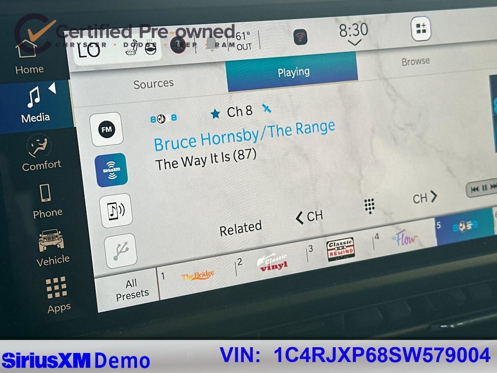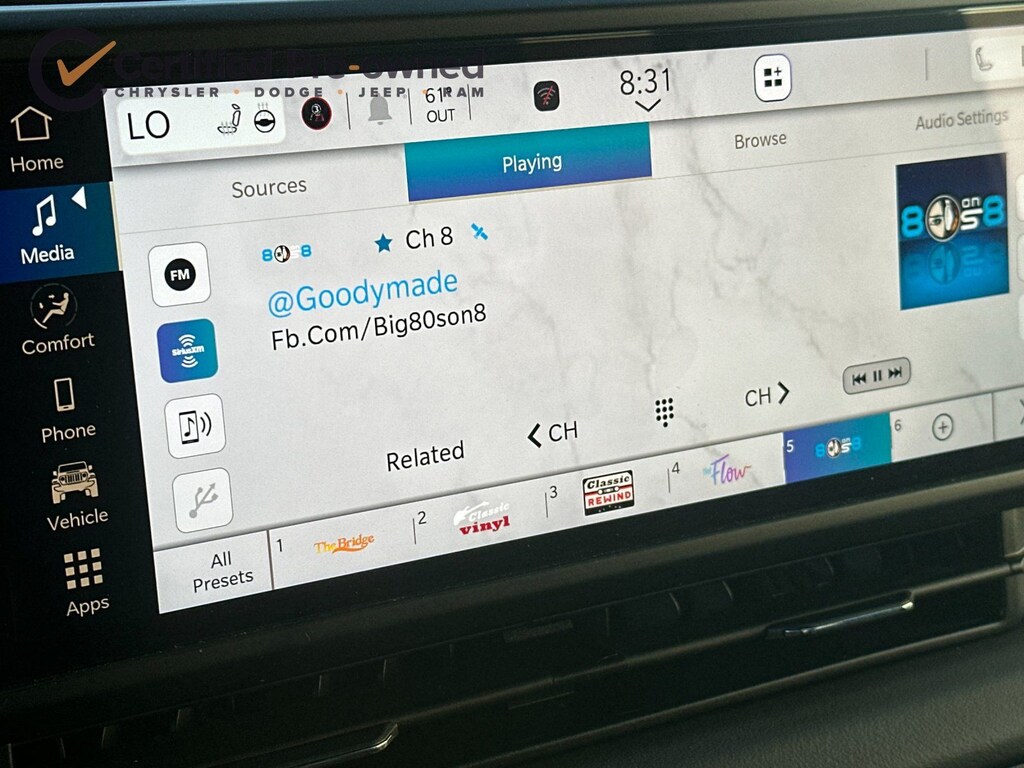 * Vehicles Up to 75,000 Miles and/or 5 Model Years. 24-Hour Towing & Roadside Assistance, Car Rental Allowance, CARFAX® Vehicle History ReportTM and an Introductory 3-month Subscription to SiriusXM® Satellite Radio & Certified Warranty Upgrades (for FCA US LLC Certified Pre-Owned program), Vehicles Between 6-10 Model Years and/or 75,001-120,000 Miles. Thorough Reconditioning Process Using Authentic Mopar Parts. 3-Month Trial Subscription for SiriusXM GuardianTM and Satellite Radio (for Certified Pre-Owned Go program), Vehicles Between 0-5 Model Years and/or 75,000 Miles. Thorough Reconditioning Process Using Authentic Mopar Parts. 12 Month/12,000 Mile Extended Care Premium Warranty, Car Rental Allowance, 3-Month Trial Subscription for SiriusXM GuardianTM and Satellite Radio (for Certified Pre-Owned Gold program)