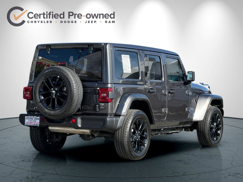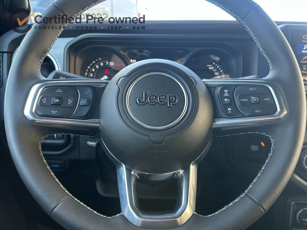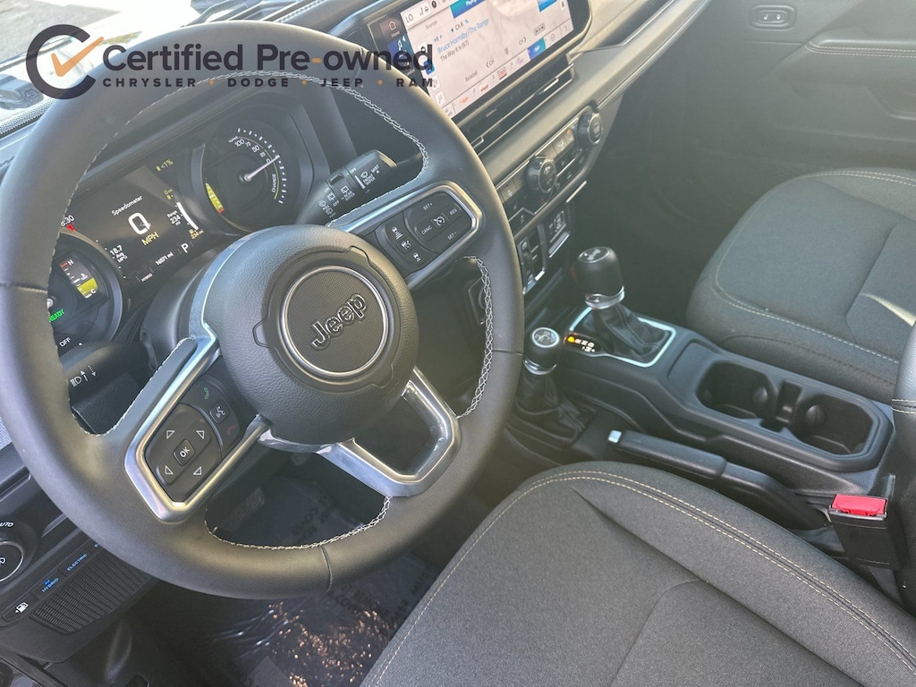 2.0L I4 DOHC, AM/FM radio: SiriusXM, Apple CarPlay/Android Auto, Auto High Beam Headlamp Control, Blind Spot & Cross Path Detection, Brake assist, Delay-off headlights, Electronic Stability Control, Fully automatic headlights, Heated front seats, Heated steering wheel, Integrated Voice Command w/Bluetooth, Panic alarm, ParkSense Rear Park Assist System, ParkView Rear Back-Up Camera, Power Top Quarter Window Storage Bag, Quick Order Package 29P Sahara 4xe, Rear Window Defroster, Rear Window Wiper/Washer, Remote keyless entry, Removable Rear Quarter Windows, Safety Group, Security system, Sky 1-Touch Power Top, Wheels: 20" x 8" Painted Black Aluminum.