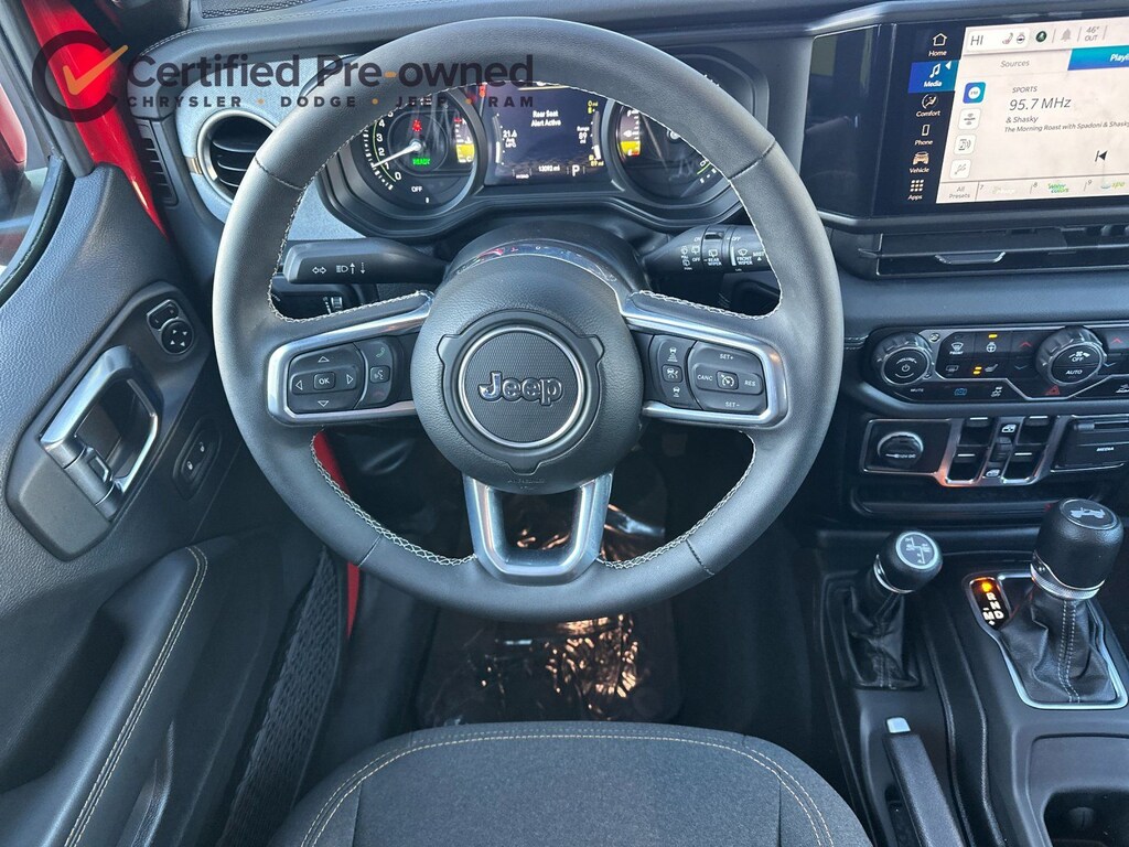 2.0L I4 DOHC, Apple CarPlay, Apple CarPlay/Android Auto, Body Color 3-Piece Hard Top, Brake assist, Cloth Low-Back Bucket Seats, Delay-off headlights, Electronic Stability Control, Emergency communication system: Jeep Connect, Freedom Panel Storage Bag, Fully automatic headlights, Google Android Auto, Heated front seats, Heated steering wheel, ParkView Rear Back-Up Camera, Quick Order Package 29P Sahara 4xe, Rear Window Defroster, Rear Window Wiper/Washer, Side Steps, Wheels: 20" x 8" Painted Black Aluminum.