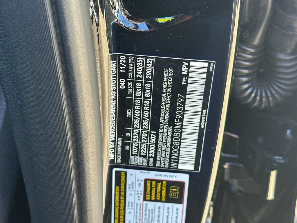 10.25" Center Touchscreen Display, 4-Way Lumbar Support, Apple CarPlay®/Android Auto®, Auto tilt-away steering wheel, Brake assist, Delay-off headlights, Electronic Stability Control, Emergency communication system: eCall Emergency System, Exterior Parking Camera Rear, Front Bucket Seats, Fully automatic headlights, Heated Front Bucket Seats, Heated front seats, Illuminated entry, Panic alarm, Power Front Seat w/Driver Memory, Power Liftgate, Radio: MBUX Multimedia System, Rear fog lights, Remote keyless entry, Security system, Speed control, Split folding rear seat, Wheels: 8J x 18 ET 38 Split 5-Spoke.